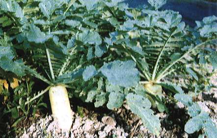 耕土が深く、肥沃で排水の良い所が適します。耕土の浅い畑では、根の長くならない聖護院(丸ダイコン)や、根が地上部に伸び出てくるタイプ(青首など)を作ります。水はけの悪い場所や粘質土の畑では、高うねにします。
