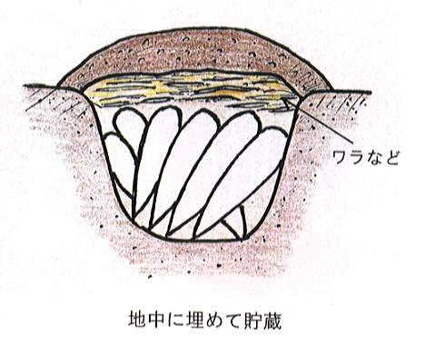 寒さが厳しくなると根が凍って駄目になるので、葉の部分まで厚く土寄せすると長く利用できます。抽根する品種で土寄せが難しい場合は、葉を切り落として、地中に埋めてやると2〜3月まで貯蔵することができます。また、ダイコンの葉はビタミンなどの栄養価が高いので、ぜひとも利用したいものです。