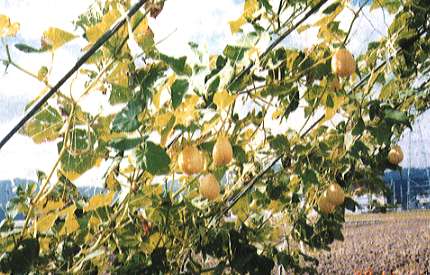 開花は9月下旬からですが、受精後の果実の肥大は早く、開花後10日〜20日位で粕漬け用になります。奈良漬けには、30〜35日の大きい果実を皮がかたくならないうちに収穫し、利用します。