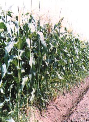 直まき、育苗どちらでも可能ですが、太くて良いものを穫るためには直まきがよく、育苗する場合は補植用にした方が無難です。直まきでは、遅霜の心配がなくなる4月下旬〜5月上旬から播種できますが、マルチがけや不織布によるべたがけをすると4月中旬にまくことができ、早く収穫することが可能です。1条にまく場合は、うね幅75〜80p、株間30pに、2条ではうね幅150pとし、1カ所2粒まきで本葉2〜3枚で1本立ちにします。育苗では、直径9pのビニ−ルポットに2粒まきし、やはり本葉2〜3枚で1本に間引きます。一列に長く植えるより、数列にある程度まとめて同じ品種を植える方が花粉のつきがよく、穂の先端まで実入りがよくなります。