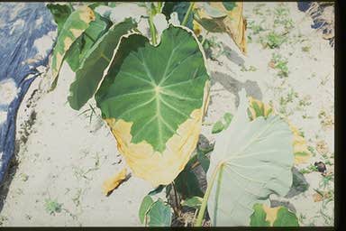 サトイモは病害虫の被害の少ない作物です。芽の傷んでいない種イモを使えば乾腐病は出ません。ときどき、スズメガが発生しますが、捕殺すればよいでしょう。
