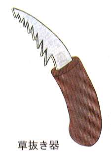 雑草の根はかなり強いもので、引き抜くのにも結構力がいります。特に夏の土が乾燥しているときはイヤになるほどです。園芸店には「雑草引き抜き器」も並べられており、カマや手グワとは違った雑草抜きができます。狭いところや深い根も抜けるので重宝します。クワと組み合わせて使うと効果的です。