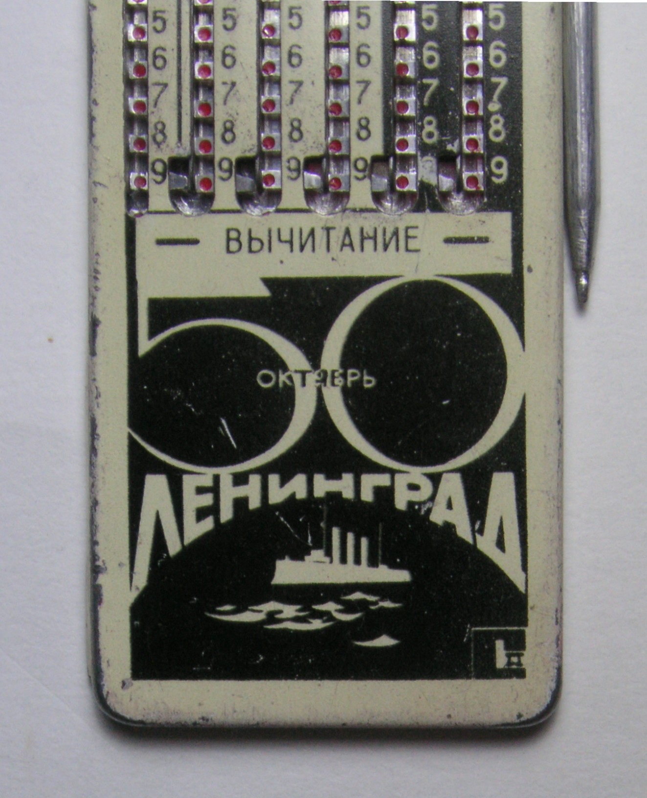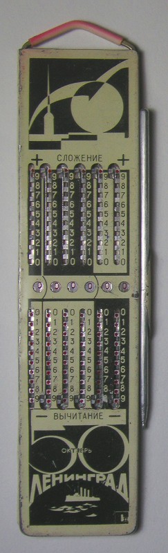 yahooオークションで縁のあった方がモスクワ在住と言うことで、捜して頂いた品です。 ソビエト製の計算器で、なにせキリル文字なのでメーカー名もなにも読めません(〜〜; 例によってキリル文字表と首っ引きで調べると 「Ленинград」 ↓ 「Leningrad」 ・・・あ、レニングラードか。 これがメーカー名なのかどうかも判りませんけど、実にソビエト連邦らしいですね。 レニングラードは造船基地です。 ![]() レニングラードと船のマークはぴったりですね。 製品はドイツのArithmaのパクリだと思われますが確証はありません。こっちがオリジナルの可能性はほとんど無いでしょうけど。 リセット用の取っ手にビニールのカバーが付き、引き出しやすいように山形となっているのが特徴です。手袋をしても扱えるようにした配慮でしょうか。 |