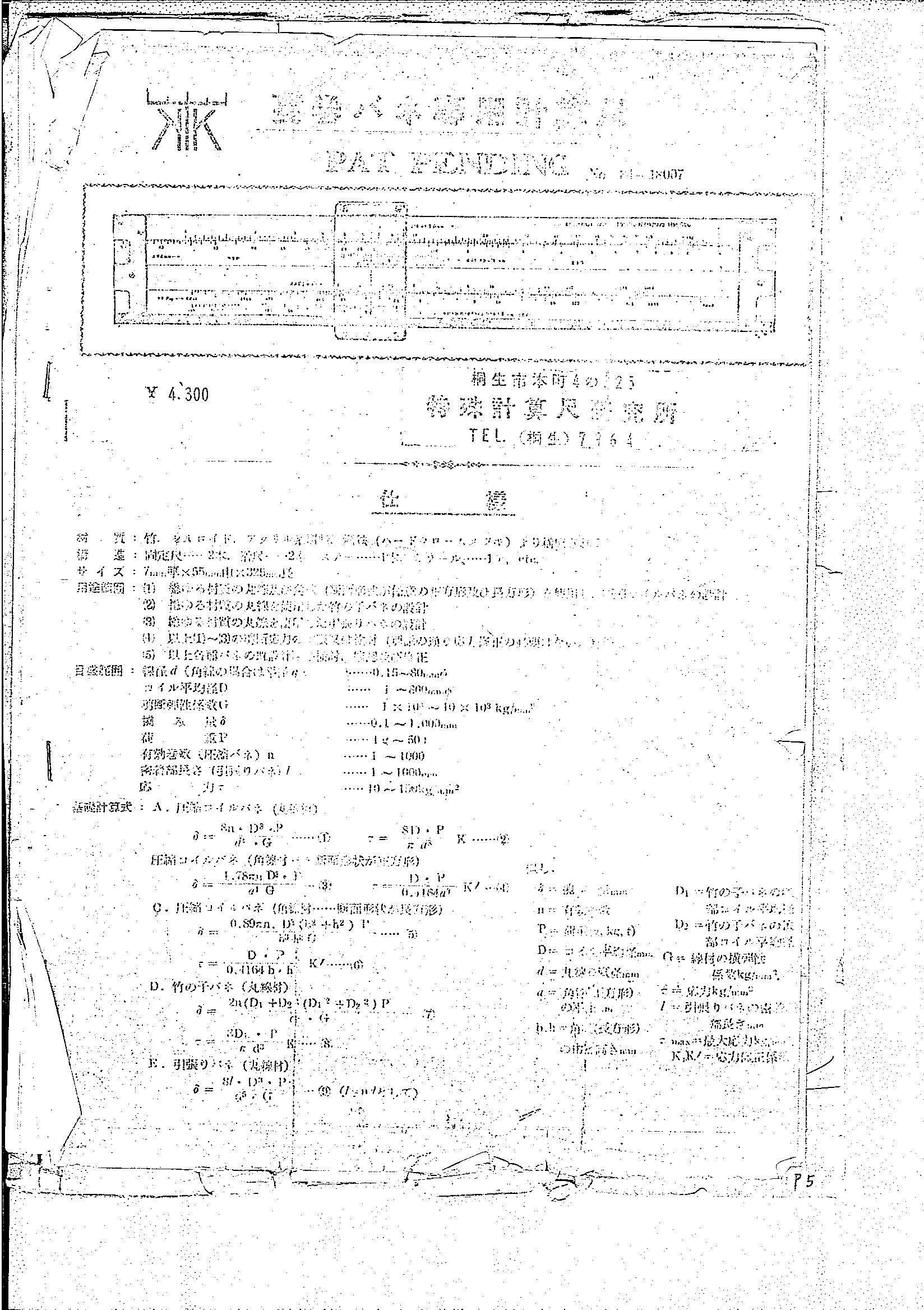 | メーカー/国/モデル名/用途 | 特殊計算尺研究所/日本/バネ計算尺/バネの設計用 |