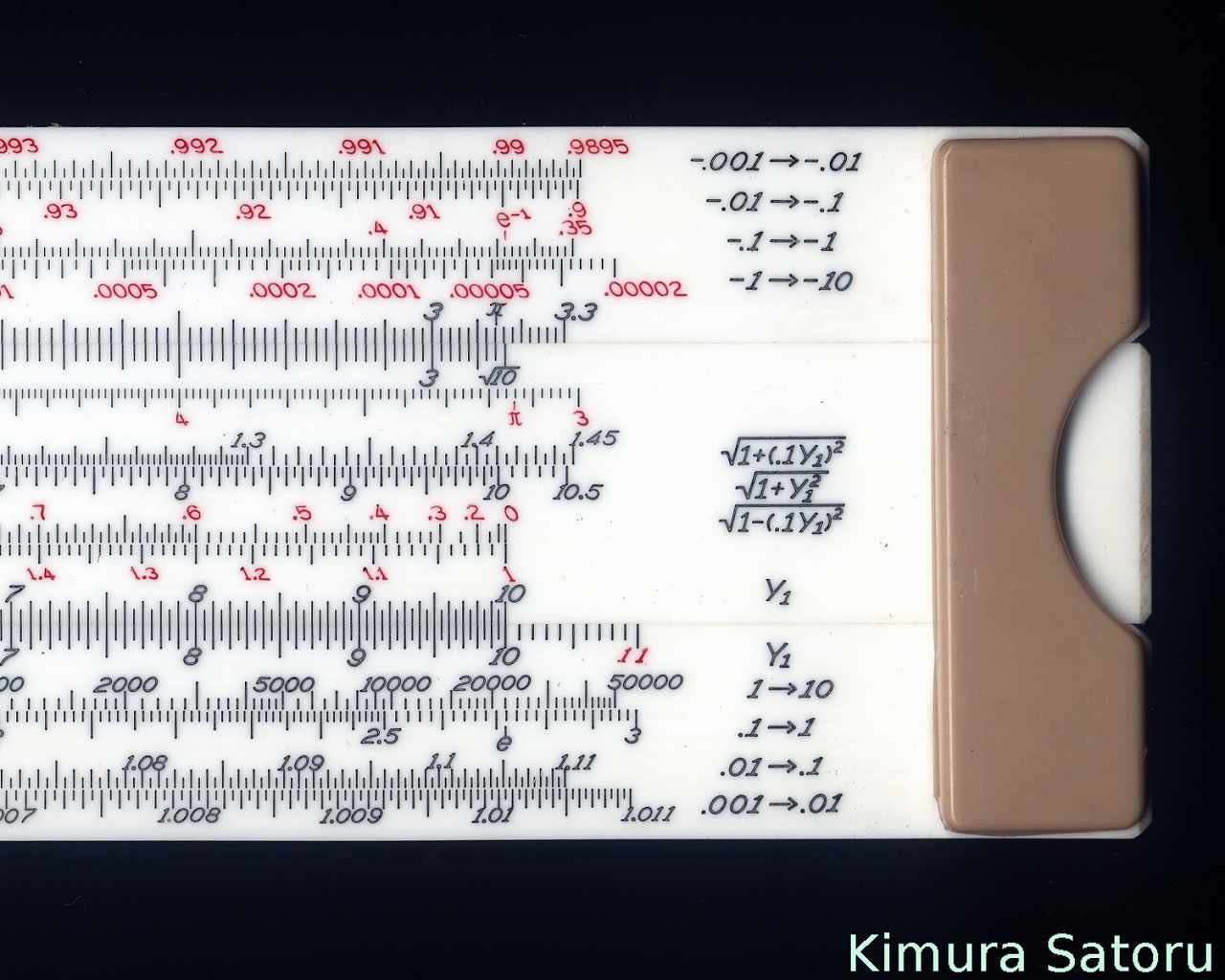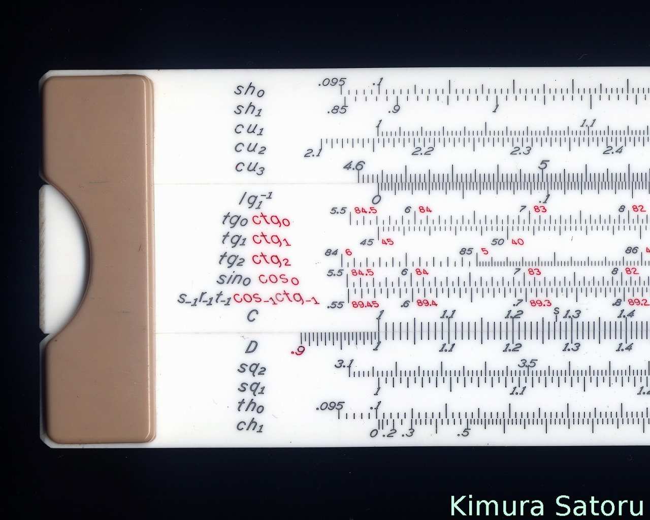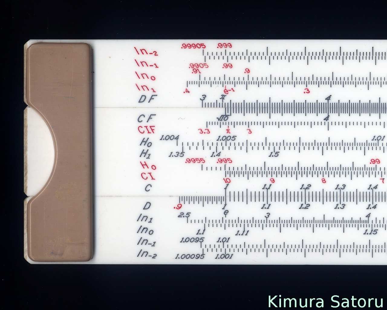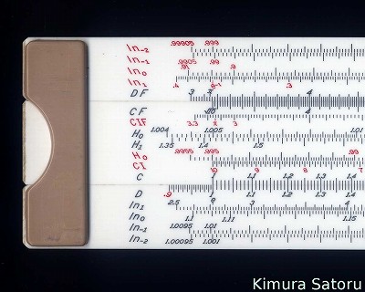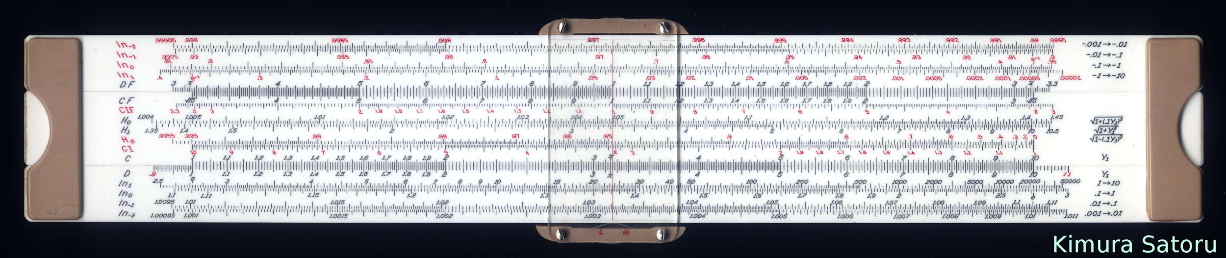 表面 Sh0 , Sh1 , cu0 , cu2 , cu3 [ Ig1-1 , tg0 , tg1 , tg2 , sin0 , s-1r-1t-1 , C ] D , sq2 , sq1 , th0 , ch1 裏面 ln-2 , ln-1 , ln0 , ln1 , DF [ CF , CIF , H0 , H1 , H0 , CI , C ] D , ln1 , ln0 , ln-1 , ln-2 ※ [ ] 内は滑尺 ずらし尺はルート10切断
