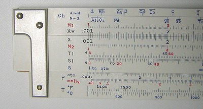 東北大学の協力で作られたという、金属化学用計算尺です。 |