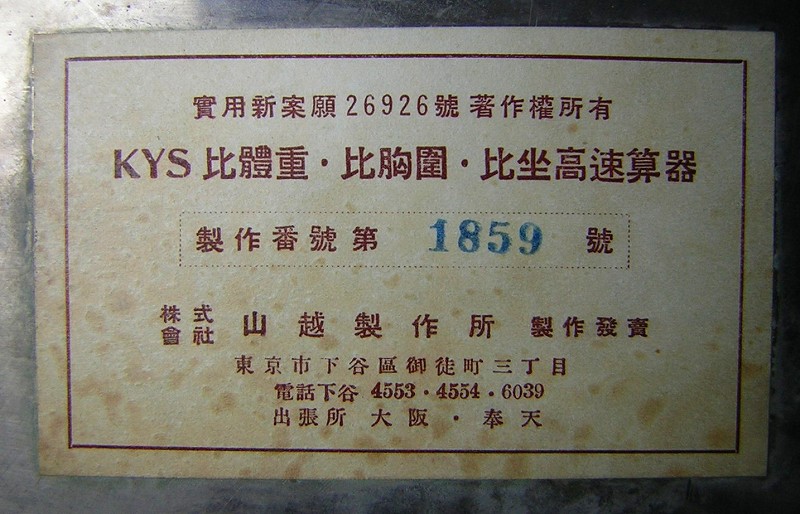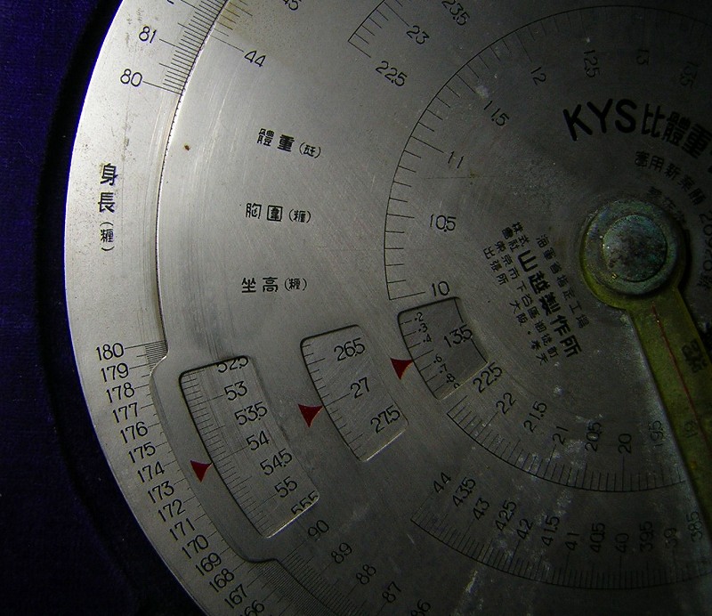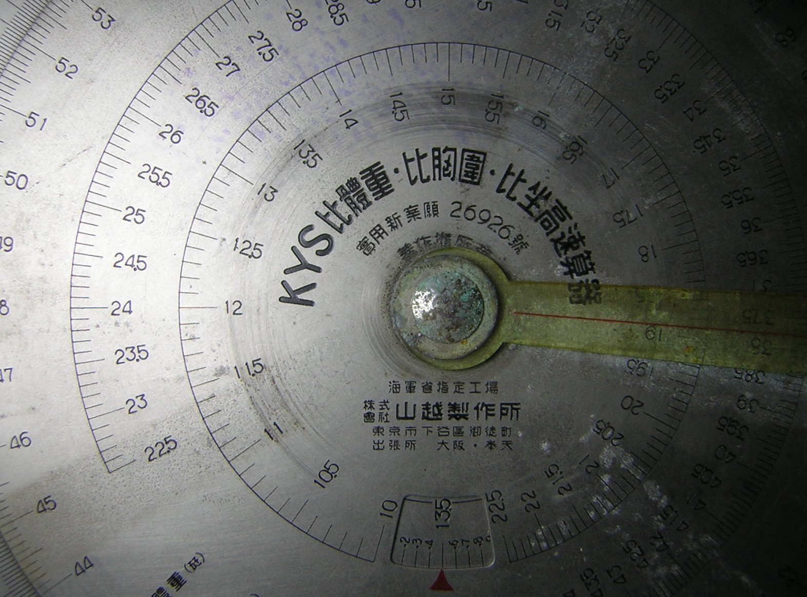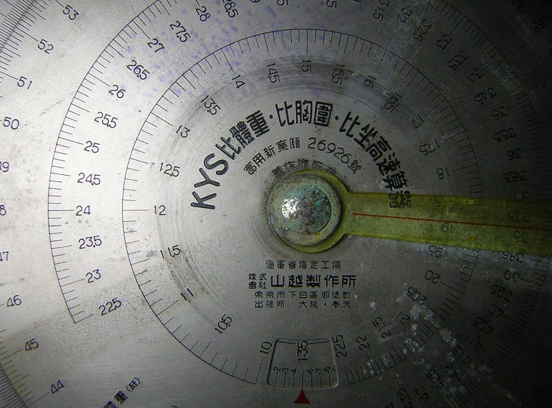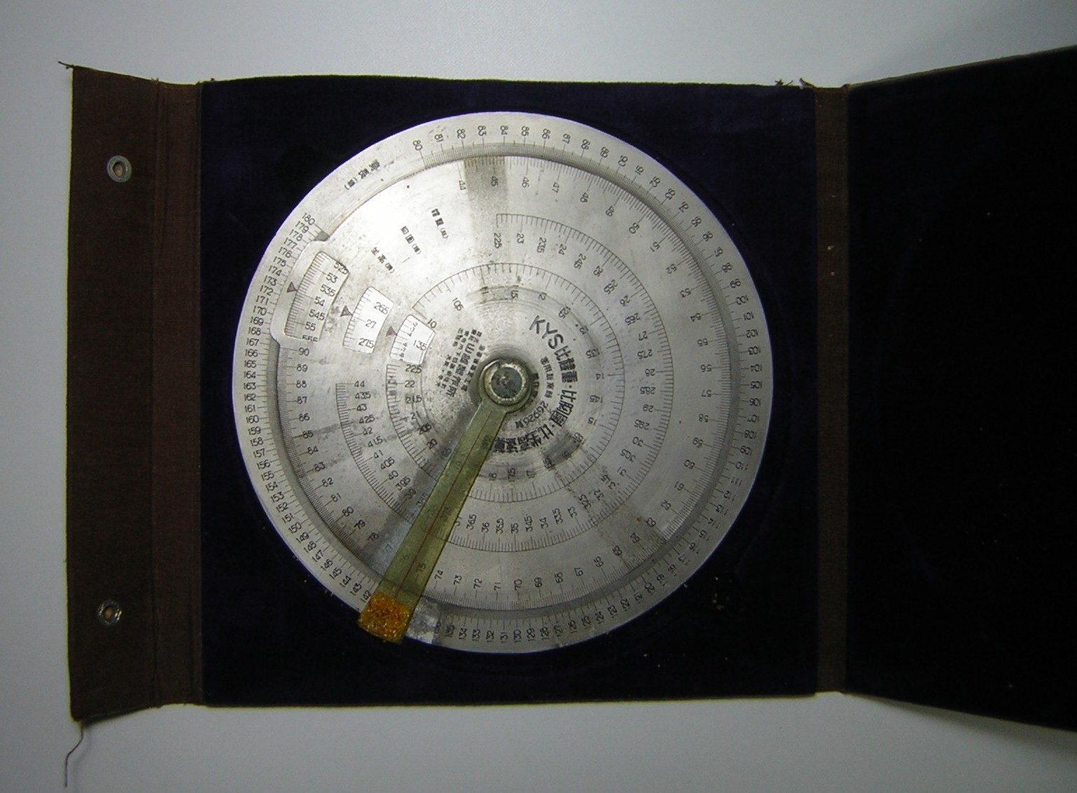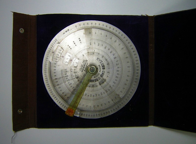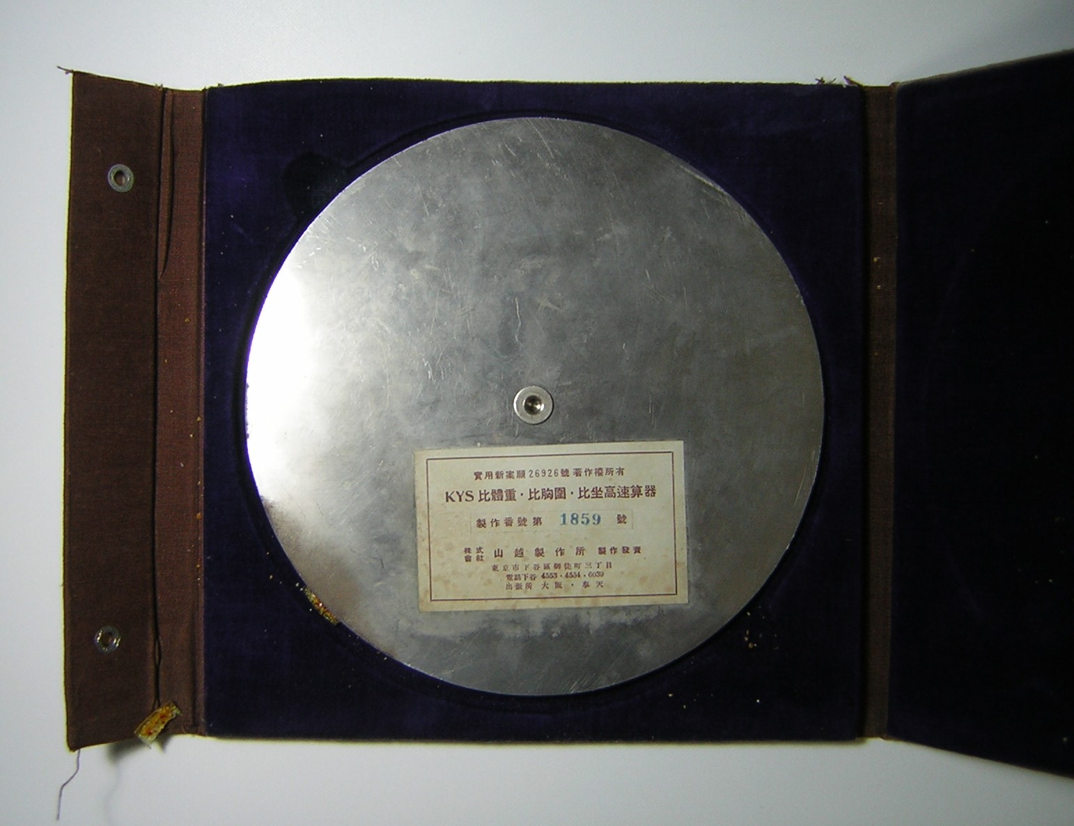戦前の円形計算器です。 身長体重胸囲座高から比を計算しようという、実に計算尺向きの機能を持った製品です。