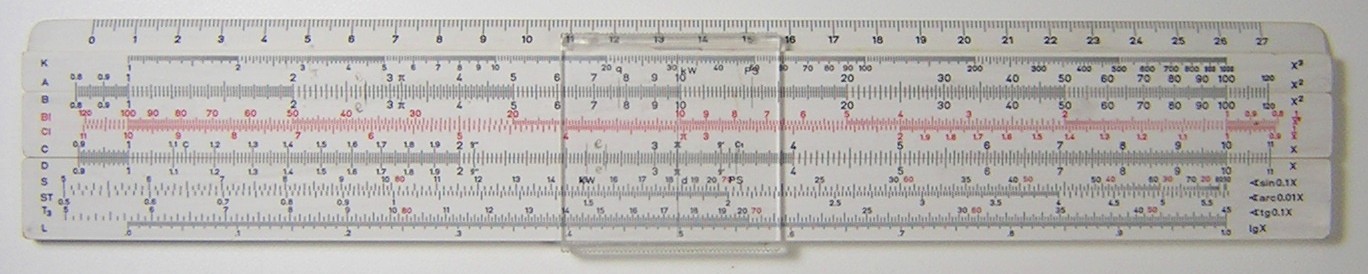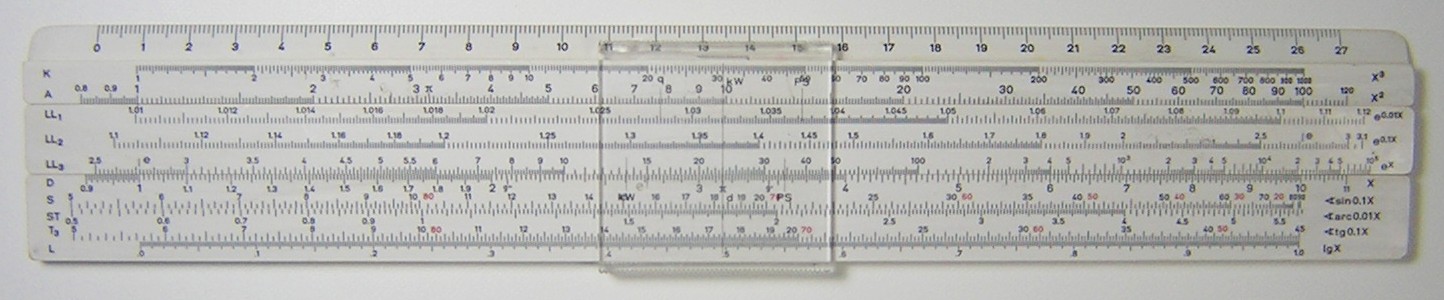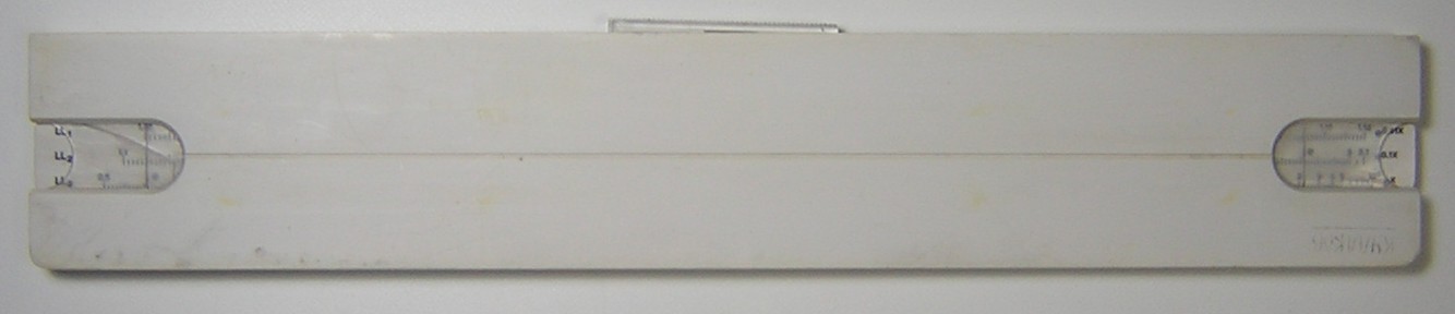 縁あって旧ソビエト連邦の計算尺を手に入れました(^^) LSLOはウクライラのキエフに工場があったようです。 型番の14Pは尺度を14装備しているという意味のようです。 以前どこかで見た尺とイメージが似ているなと思っていました。それが中国の飛魚シリーズのどれかだと思いこんでいたのですが、norihito4さんから資料写真を頂いて全くの思いこみだと判明(笑 FABER CASTELL社のプラスティック尺に似たようなのがあるので、その辺と勘違いしていたようです。 BI尺があったりダルムスタットだったりと、結構ユニークです。 笑ってしまうのは、ケースに定価がそのまま刻まれている事です(下の写真参照) 当時の4ルーブル20カペイカが日本円でどの程度なのかよくわかりませんが、あまり安い物ではなかったようです。同時に手に入れたオーストリア製のものはかなりの高級品扱いでした。 手に入れてくれた人によると、持っていたのは30代の技術者の方で、学生時代に父親から贈られたものだそうです。 となると約20年程前に贈られた事になりますから、1980年代の終わり頃でも実用に使っていたということですね。 さすがはロシア旧ソビエト連邦。 ともあれ、何かと興味深い旧ソビエト連邦の計算尺です。