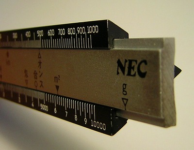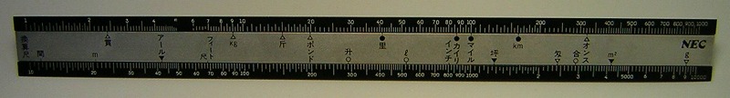私の嫌いな(笑)NEC製の換算尺です。もちろんどこかに造らせた物でしょうが手がかりはありません。 |