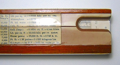 | 材 質 | 本体/木製(マホガニー?)+セルロイド カーソル/セルロイドのランナー+ガラス ケース/厚紙 |
